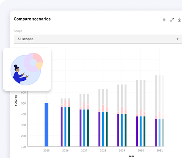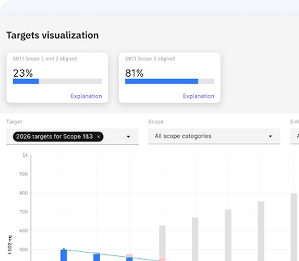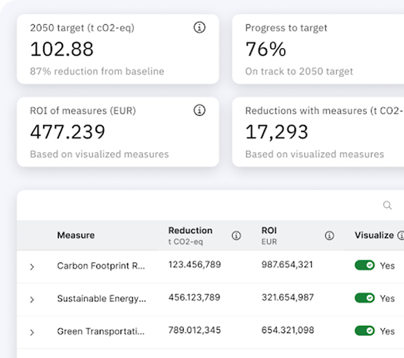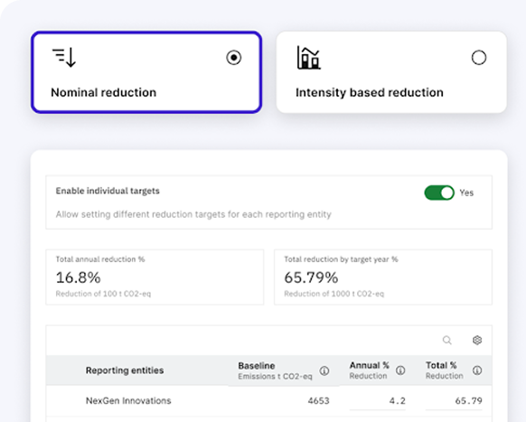 Definieren Sie konkrete Reduktionsziele und hinterlegen Sie passende Maßnahmen direkt im Tool. So schaffen Sie eine transparente Grundlage für Ihre Nachhaltigkeitsstrategie.