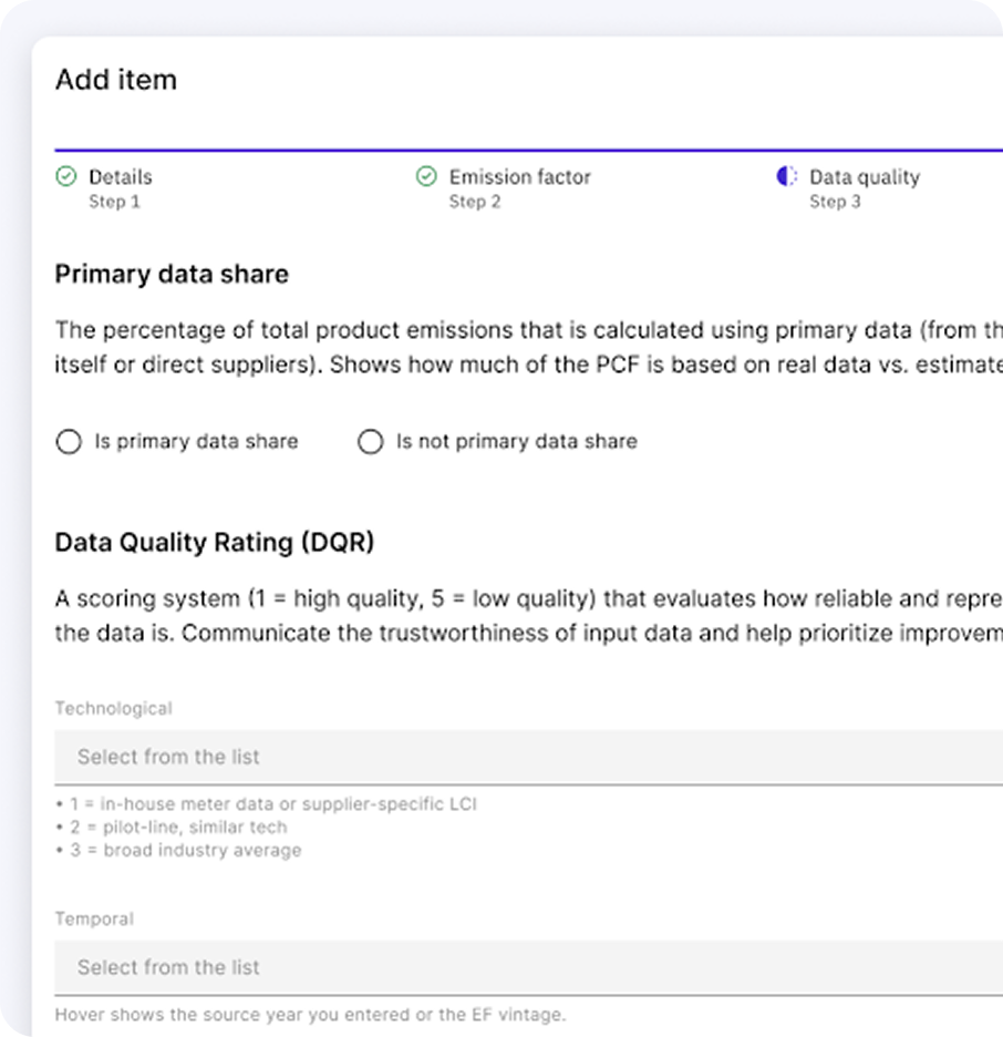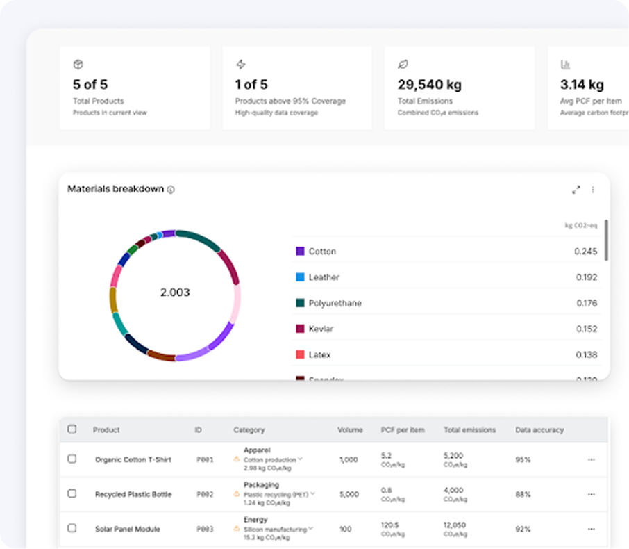 Berechnen Sie die CO₂‑Fußabdrücke Ihrer Produkte in Minuten: Upload Ihrer Daten, automatisches Matching mit Emissionsfaktoren und transparente Hotspot‑Analysen.