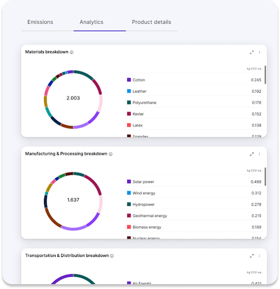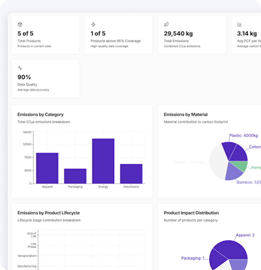 Lösung: Interaktive Dashboards zeigen Emissionen pro Produkt, Bauteil oder Lieferant und heben die größten Emissionsquellen hervor.