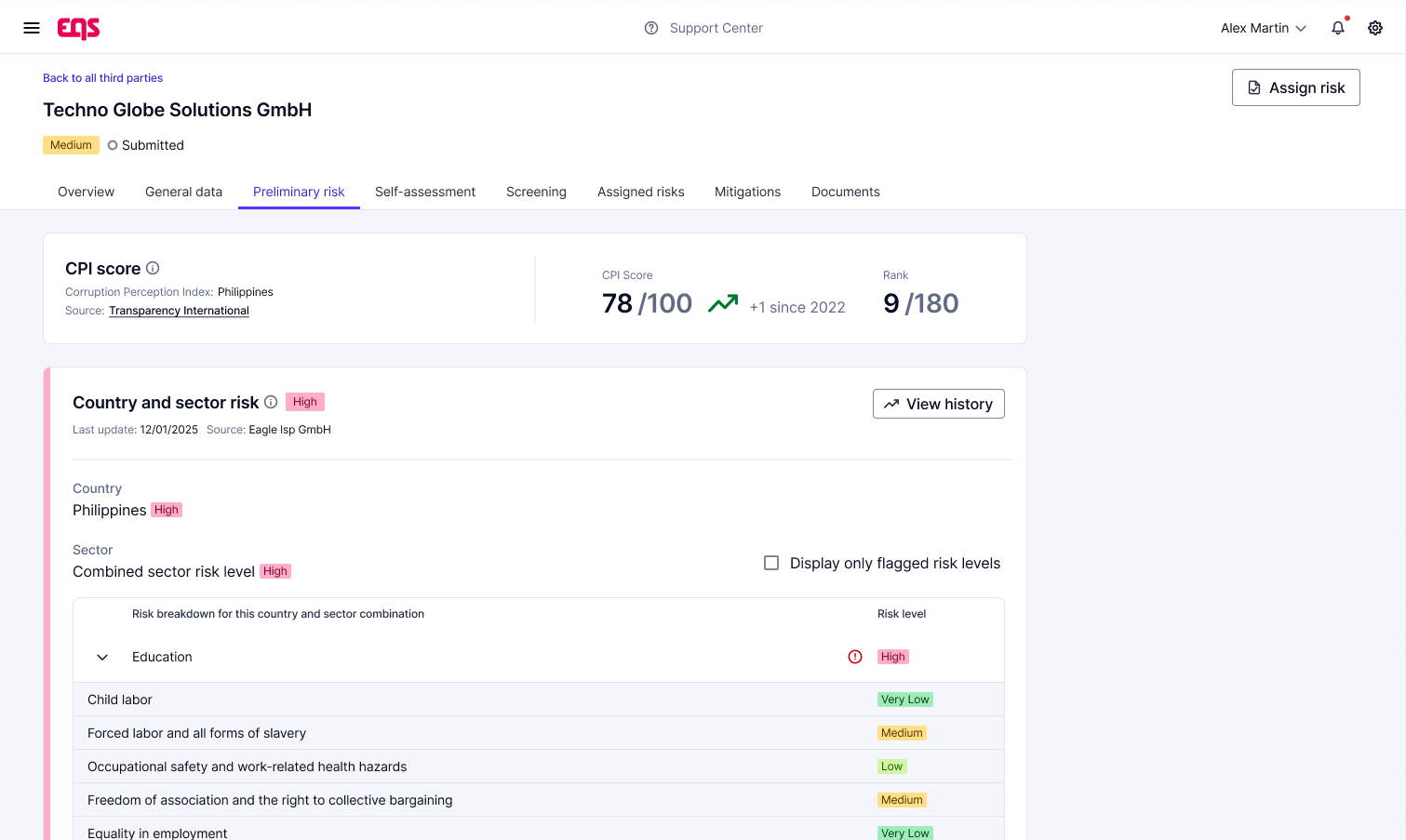 EQS provides ISO-certified infrastructure, encryption in transit and at rest, configurable access controls, and complete activity logs. All data you store about your third parties is processed in line with GDPR and supports your internal governance, audit, and compliance requirements.