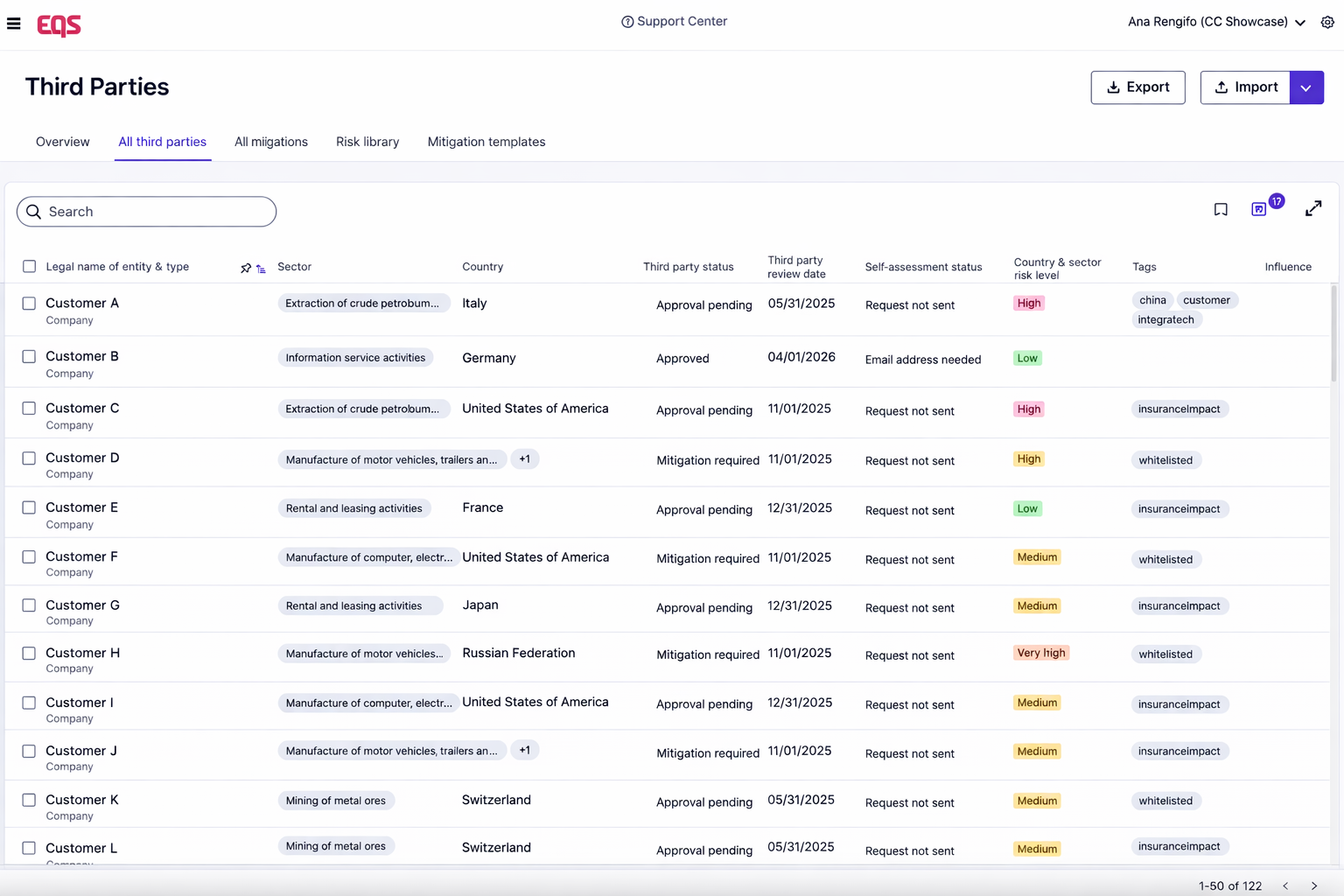 What EQS does: Every third party gets a single profile. Risk tier is assigned and stored there. Classification follows a consistent framework – not the judgement of whoever opens the spreadsheet that week.