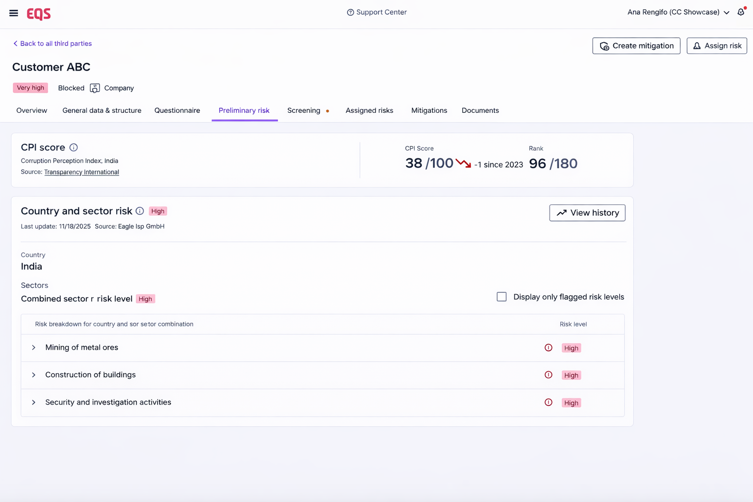 Why it matters to your program: A decision documented at the point it was made is evidence. A decision reconstructed six months later is a story. EQS gives you the former — consistently, across every third party.
