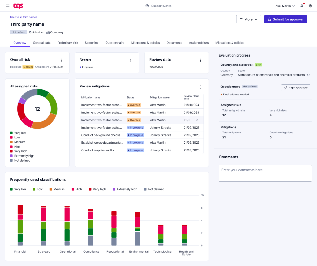 Why it matters to your program: A decision documented at the point it was made is evidence. A decision reconstructed six months later is a story. EQS gives you the former — consistently, across every third party.